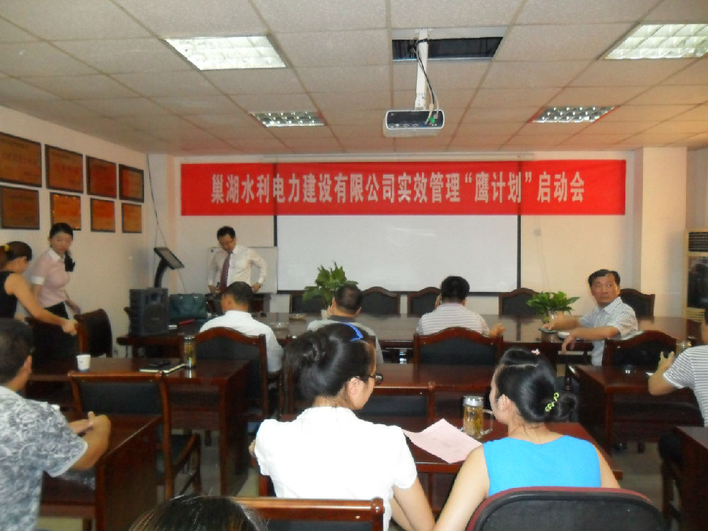 2013年8月13日上午8:30分在公司六樓會議室由深圳中旭公司舉行巢湖水利電力建設(shè)有限公司實效管理“鷹計劃”啟動會,公司各部門及實驗室等全體人員參加了該會。會上由中旭公司羅天熙、任潔兩位老師給公司“鷹計劃”執(zhí)行前作了詳細(xì)動員。