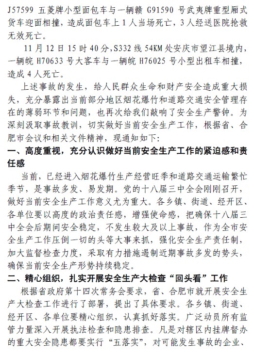 現(xiàn)將市安委辦《關(guān)于切實(shí)做好當(dāng)前安全生產(chǎn)工作的緊急通知》(巢安辦[2013]120號(hào))轉(zhuǎn)發(fā)給你們,請(qǐng)結(jié)合本行業(yè)安全生產(chǎn)管理特點(diǎn),認(rèn)真貫徹執(zhí)行。