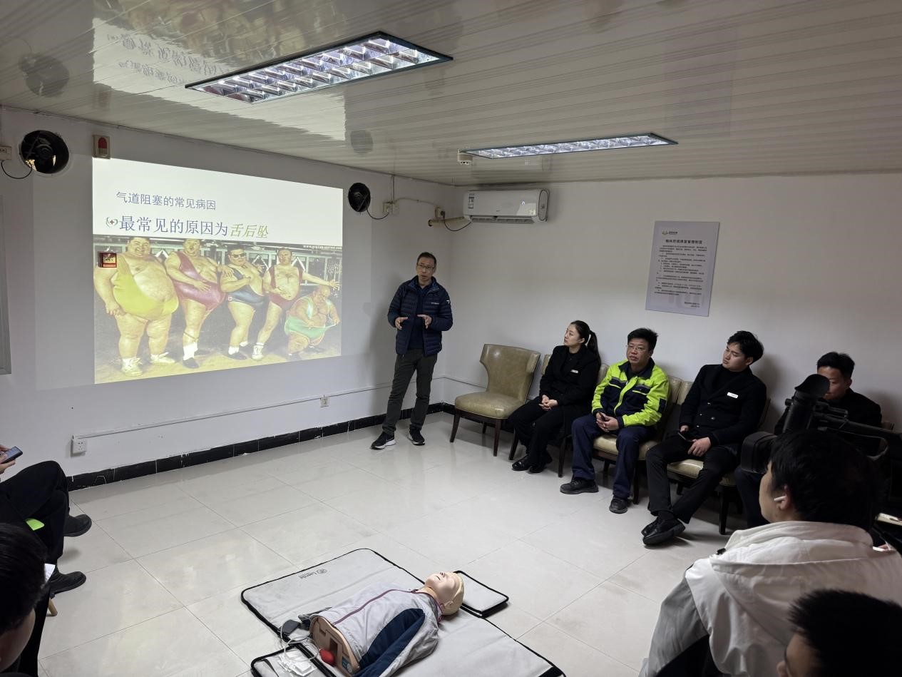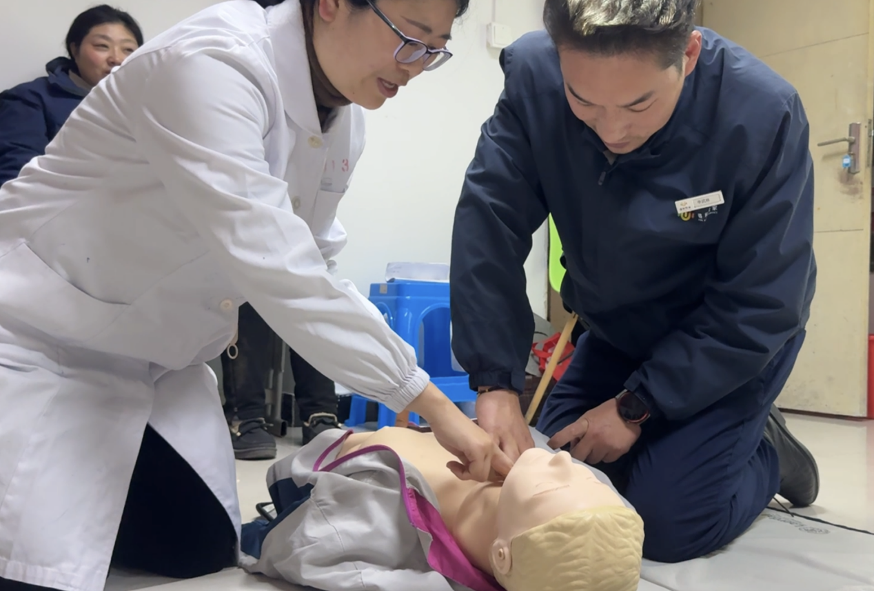 培訓(xùn)過程中,南通三院心內(nèi)科顧建國主任帶來了干貨滿滿的理論講解。盛和悅家的物業(yè)人員們?nèi)褙炞?,認(rèn)真聆聽顧主任關(guān)于現(xiàn)場(chǎng)急救種類及基礎(chǔ)知識(shí)的細(xì)致闡述,逐漸明晰在面對(duì)各類突發(fā)狀況時(shí)應(yīng)如何迅速且準(zhǔn)確地做出判斷與反應(yīng)。緊接著,心內(nèi)科崔紅艷護(hù)士長(zhǎng)進(jìn)行心肺復(fù)蘇(CPR)實(shí)操演示,其專業(yè)嫻熟的動(dòng)作令在場(chǎng)人員印象深刻。盛和悅家的物業(yè)人員們踴躍上手實(shí)踐,在崔護(hù)士長(zhǎng)及顧主任的耐心指導(dǎo)下,逐漸掌握了正確的操作要領(lǐng),每一次按壓、每一次人工呼吸都力求標(biāo)準(zhǔn)規(guī)范,不斷糾正與完善自身技能。