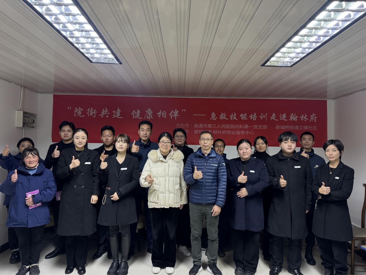 近日,在院街共建的積極推動(dòng)下,由南通市第三人民醫(yī)院內(nèi)科第一黨支部與新城橋街道文峰社區(qū)聯(lián)合主辦的急救技能培訓(xùn)活動(dòng)在翰林府盛大開展,盛和悅家積極組織物業(yè)人員全程參與其中。此次活動(dòng)是構(gòu)建社區(qū)安全防護(hù)網(wǎng)的重要舉措,為提升物業(yè)團(tuán)隊(duì)?wèi)?yīng)急救援水平提供了寶貴契機(jī)。